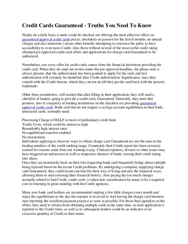 Guaranteed approval credit cards are subprime offers designed for people with bad or no credit. Cards never endorse their credit limits, but the majority of the applicants wish to know how much they can spend. Guaranteed approval credit cards, for instance, will still have requirements, such as making an upfront deposit for a secured credit card, to with most unsecured subprime cards, your odds of approval are generally closer to pretty good than they are to guaranteed — though selecting the. They can guarantee approval because they don't check your credit history when making their decision. A secured credit card requires you to put down a security deposit, usually the amount of credit that will be extended to you — less processing fees, if any.