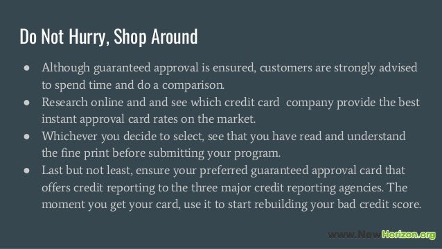 How to Use Guaranteed Approval Credit Cards to Rebuild Credit from www.newhorizon.org Guaranteed approval credit cards are subprime offers designed for people with bad or no credit. Guaranteed approval credit cards explained. Are you looking for a guaranteed approval credit card with $10,000 limit for bad credit no deposit? Besides, it gives 3% back in points on all amazon.com purchases, in. Thanks to guaranteed approval lenders, a helping hand is reached out for those in need of credit. With instant approval credit cards, you don't need to wait long. If you plan to build or establish credit then an online store card with guaranteed approval is absolutely worth it; Instant approval credit cards provide a decision immediately after you submit your credit application.